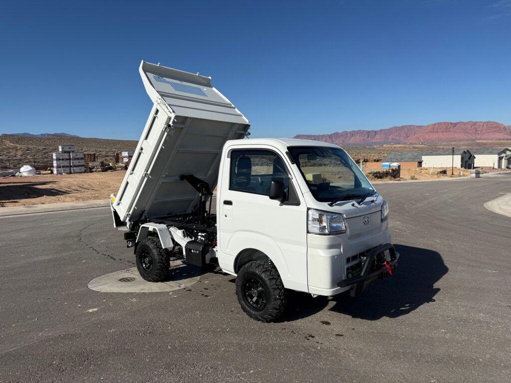 Upgraded Suspension, 3″ Lift with New UTV Tires & Wheels. 660cc Fuel Injected Engine. This unit comes with a Manual 5 Speed Transmission with low and high range differential. 4×4..HD Dump Truck, Fully Enclosed Cab Comes Standard with Heat/AC with Temp Control and 3 Speed Fan, Power Steering, High/Low Beam Headlights, Tail-lights, Turn Signals, Horn, Safety Belts, Head Rests, Lockable Doors, 12V Power Outlet, Windshield Wipers. These Japanese 4×4 mini trucks are the Safest, Most Equipped, Best Built…